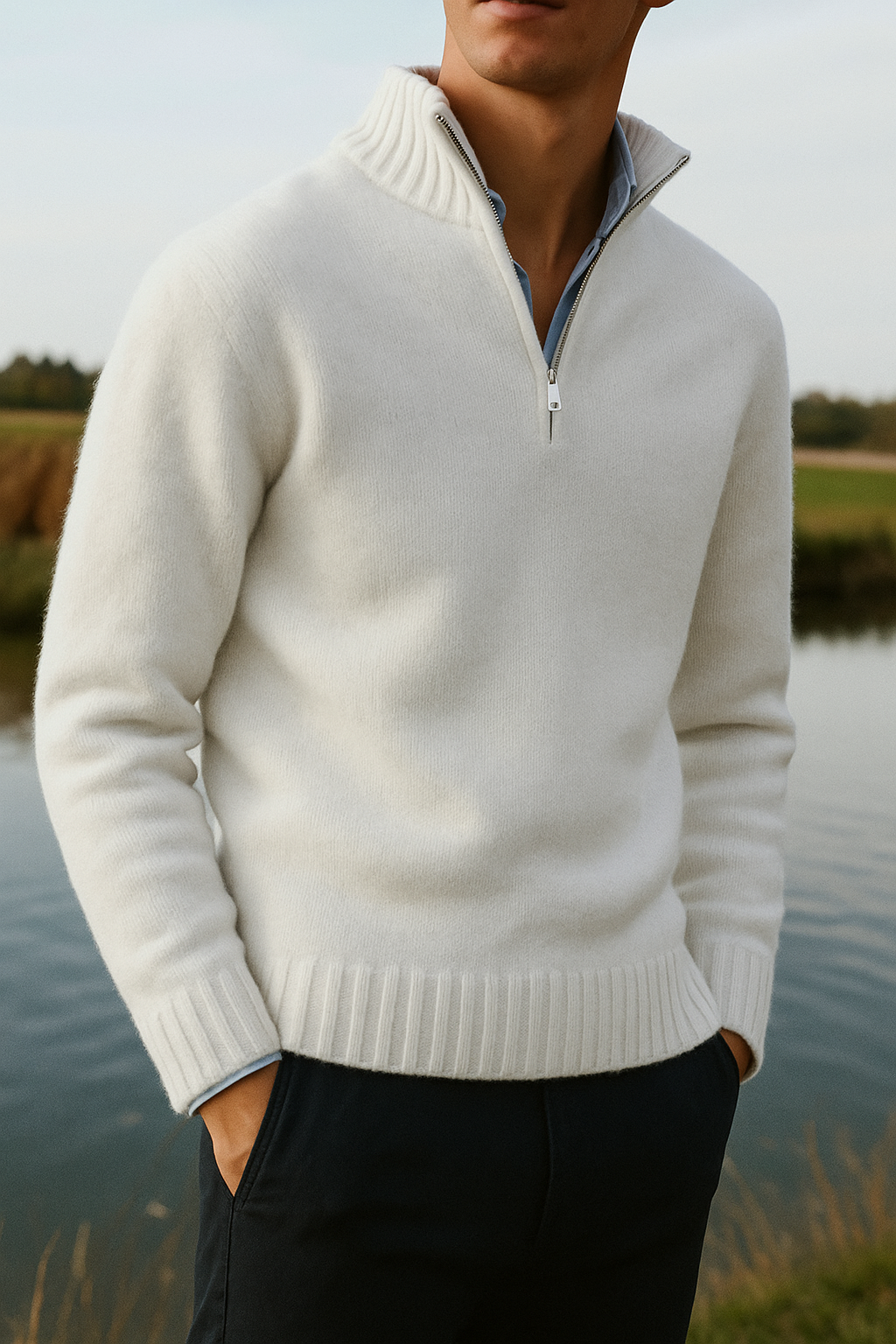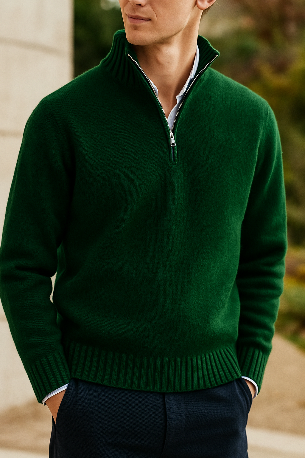 The high neck with a sleek zipper adds a contemporary edge while offering adjustable styling — wear it zipped up for a sharp look or slightly open for a relaxed vibe.