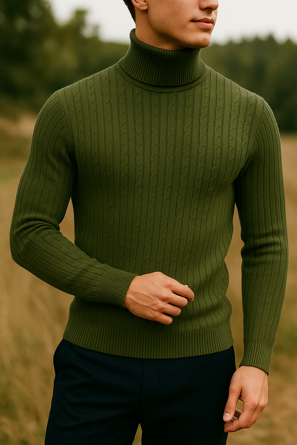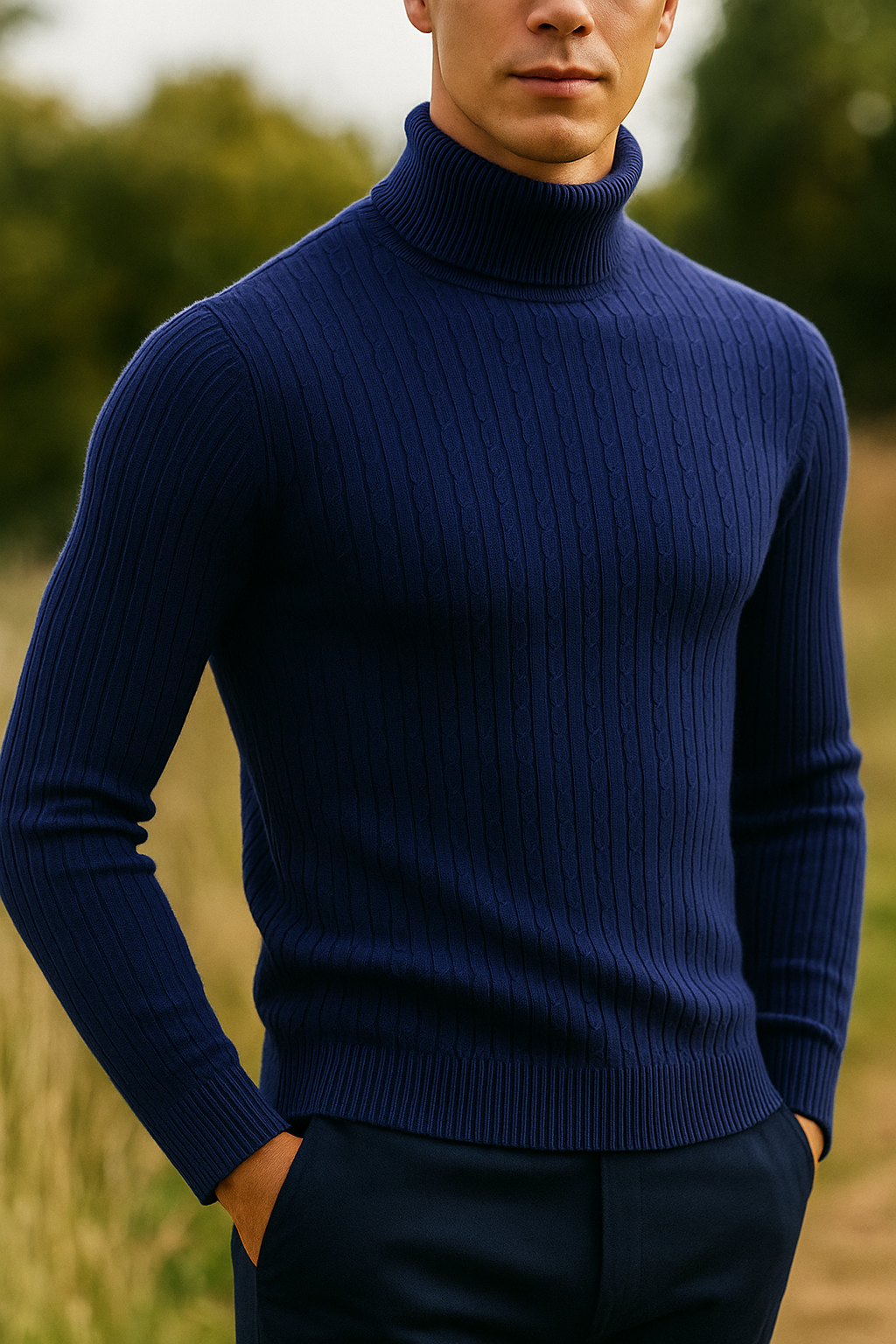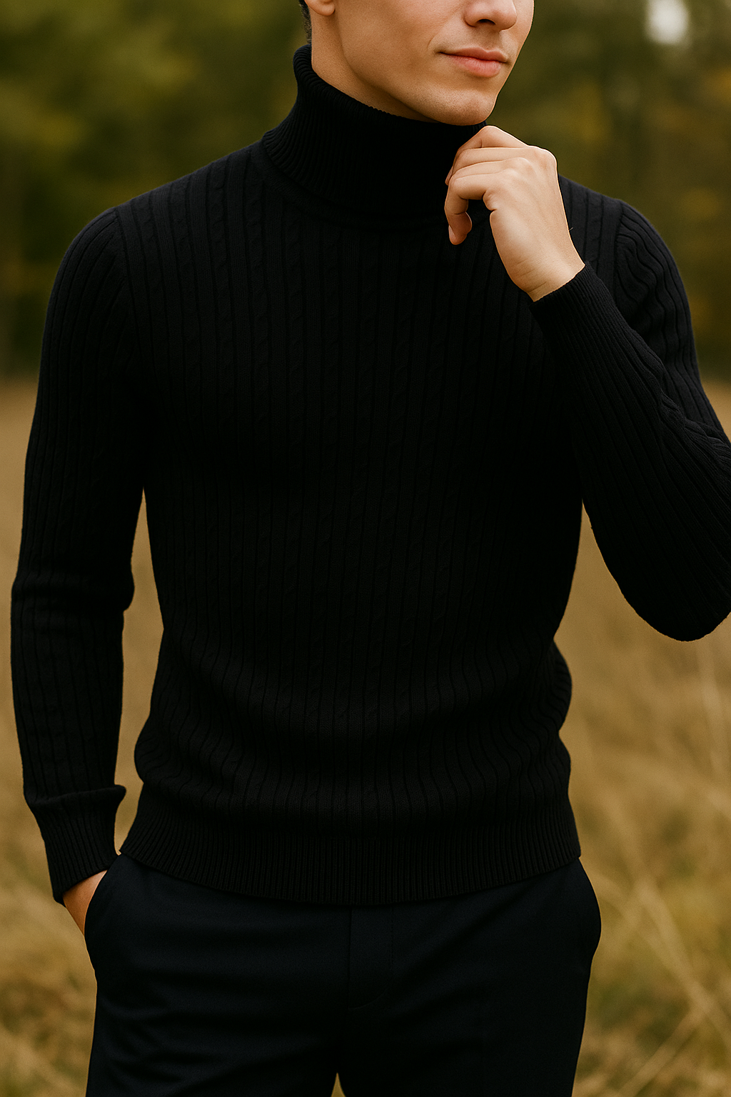 Featuring a finely ribbed pattern with subtle vertical lines, this piece enhances the body’s natural shape without feeling restrictive. The high-neck design provides both warmth and a refined look, making it a versatile choice for casual or more elevated outfits.
