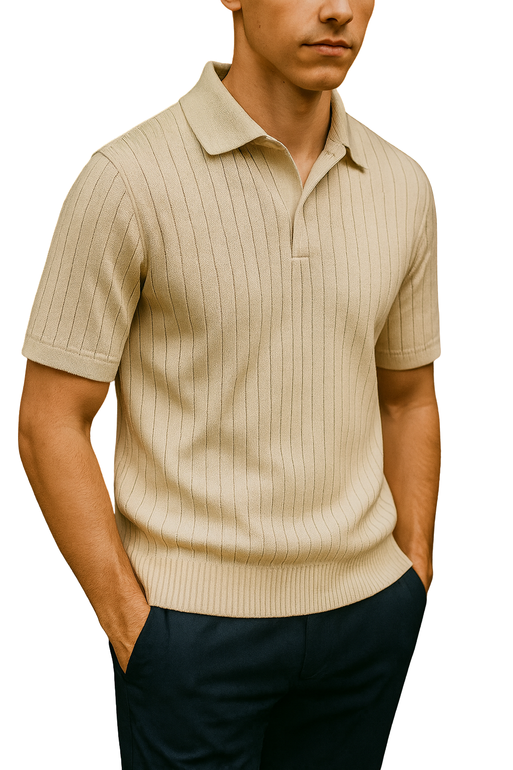Desde la textura marcada hasta el acabado firme del cuello, cada detalle está diseñado para transmitir durabilidad y confort. El tejido conserva su forma, no se deforma con el uso y ofrece un ajuste que se adapta sin perder estructura. Es una pieza hecha para acompañarte por mucho tiempo, manteniendo siempre un aspecto impecable.